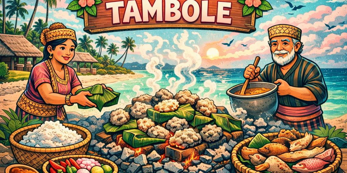 Tombole adalah kuliner tradisional khas Wakatobi, khususnya Pulau Kaledupa, berupa olahan singkong, ubi, dan pisang yang dimasak menggunakan tradisi bakar batu (Hebatua). Foto: DiveSeto